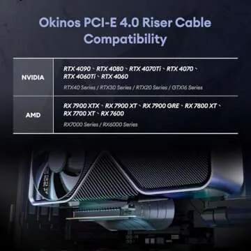 Okinos, PCI-E 4.0 Riser Cable, Compatible with RTX4090, RTX4080, RX7900XTX, PCIe 4.0 x16 High Speed Flexible Extender Card Extension Port 90 Degree Adapter, 300mm Black