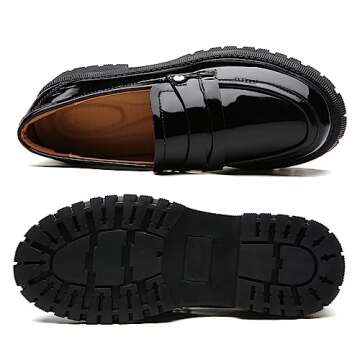 OKJ Women’s Chunky Platform Loafers - Elegant Patent Leather Slip-Ons