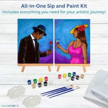 OKKOSTAR Paint and Sip Kit for Adults - Date Night Painting Kit for Couples - 8x10 Inch Pre Drawn Canvas to Paint for Two with Easel & Apron - Sip n Paint at Home - Romantic (2 Pack)