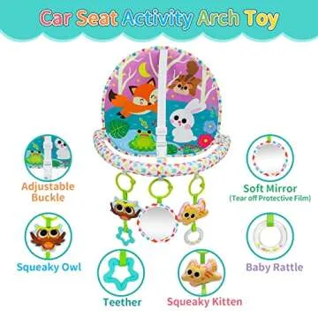 OKOOKO Car Seat Toy Rear Facing Car Seat Toy Baby Travel Toy Double-Sided with Baby Mirror Plush Toys Rattle Teether Thickened Pad Adjustable Sensory Toy for Newborn Baby Infant