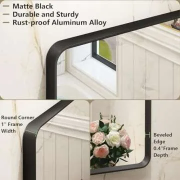 OKPAL 28X36 Inch Black Metal Framed Bathroom Mirror for Wall, Matte Black Bathroom Vanity Mirror, Black Rounded Rectangle Modern Mirror, Rustproof, Shatter-Proof (Horizontal/Vertical)