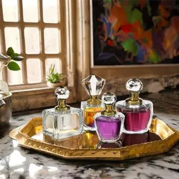 Okuna Outpost 4 Pack Crystal Perfume Bottle Set in 4 Unique Designs, Empty Refillable Bottles for Fragrances, Bathroom Decor