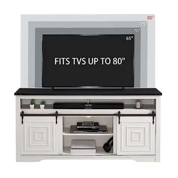 Okvnbjk White TV Stand for 75" TV, Entertainment Centre with Sliding Barn Door, Farmhouse Style TV Console with Extra Large Storage Space, Suitable for Living Room, Bedroom, Games Room, Off-White