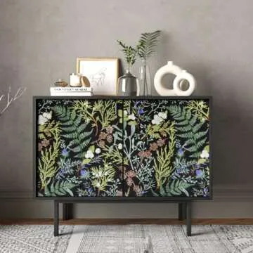 Okydoky Peel and Stick Wallpaper, Black Floral Wallpaper, 17.3"x78.7", Boho Leaf Wallpaper, Self-Adhesive Wallpaper, Home Decor for Bathoom Kitchen Wall Cabinet, Vinyl Waterproof L93192-2(US)