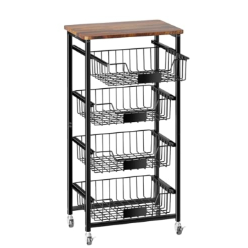Our small kitchen cart has received numerous positive reviews, applauding its strength and easy assembly compared to older models from competitors. The BPA-free, food-safe powder coating enhances its durability while ensuring your food remains safe and well-stored. This cart’s 5-tier fruit basket features pull-out baskets equipped with DIY chalk labels, making it simple to identify and access your items quickly. Whether it’s fruits, produce, or even small bottles of vitamins and herbs, this kitchen cart is versatile enough to meet your needs while fitting snugly into tight spaces. Perfect for those living in cozy apartments or needing an organized corner of the kitchen, this cart truly shines in both function and style.