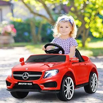 Show more Introducing the Licensed Mercedes Benz GLA45, the ultimate dream car for toddlers aged 1-3! This luxurious remote control car beautifully replicates the iconic Mercedes Benz GLA45 design, complete with intricate detail and an authentic feel. With LED headlights lighting up the path and functional dashboard gauges, your little one is ready to take on thrilling adventures in style.