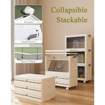 These multifunctional storage bins boast an impressive capacity of up to 48 quarts, allowing you to store and organize numerous items efficiently. What makes them truly unique is their clever construction that allows for easy assembly and space-saving capabilities. Enjoy hassle-free stacking, thanks to their secure grooves, and when you're not using them, simply fold them down for compact storage. The special design also features four sturdy, rotating wheels, so you can transport your items effortlessly, no matter the weight. The convenient dual front doors allow access from two sides, making it easy to retrieve items without fumbling around.