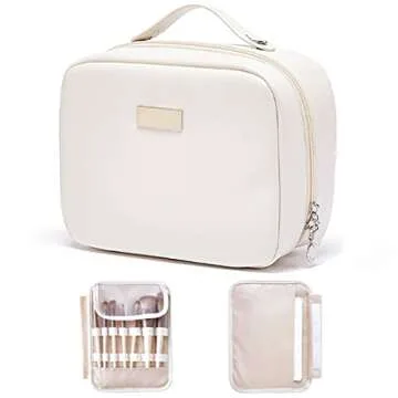 OLBUPS Portable Large Capacity Cosmetic Bag, Skincare Products, Makeup Brush Storage Bag, Double Layer Makeup Bag (White)