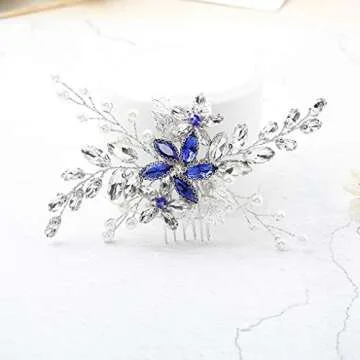 Olbye Wedding Hair Comb Blue Rhinestone Bridal Hair Accessories for Bride and Bridesmaids Wedding Hair Piece Silver