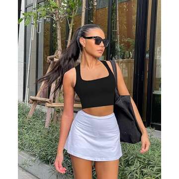 OLCHEE Womens 3 Pack Crop Tank Tops Seamless Ribbed Square Neck Tapered Shoulder Strap Sleeveless Workout Top Summer Shirts - Black Brown Beige Medium