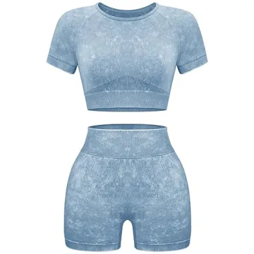 Show moreIntroducing the OLCHEE Women's Workout Set —an ultimate fusion of style, support, and comfort designed for the modern woman. Crafted with a premium acid wash technique, this set boasts of superior quality that doesn’t fade, ensuring long-lasting vibrant colors. The fabric is not only lightweight but also remarkably soft, gentle against your skin, and completely opaque, allowing you the freedom to move without fear. Whether you’re at the gym, yoga studio, or running errands, this outfit offers a stylish yet functional solution. The unique ribbed texture around the waist and cuffs promises to keep the crop top in place, while the high-waisted design provides tummy control and accentuates your natural curves. The matching shorts are designed to enhance your figure without compromising on comfort. Embrace your workouts with confidence and style!