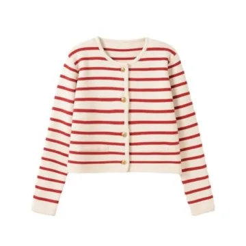 Show moreIntroducing the captivating Old Money Aesthetic Clothing Women Striped Cardigan Sweater, a perfect blend of elegance and modern sensibility. This trendy cropped sweater, available in a striking red hue, is designed for fashionable women who appreciate both style and comfort. Crafted from high-quality, medium-weight fabric, the sweater provides just the right amount of warmth without feeling bulky, making it an excellent choice for layering.<\/p>