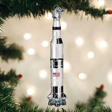 Old World Christmas Saturn V Rocket Glass Blown Ornament for Tree