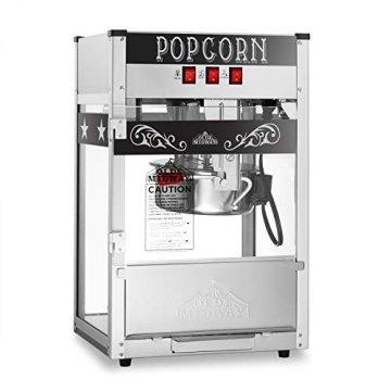 Show moreIntroducing the Olde Midway Commercial Popcorn Machine Maker, your ultimate gateway to a movie-theater experience at home! Constructed with a robust, heavy-duty stainless steel body, this popcorn maker merges modern aesthetics with commercial-grade quality for unparalleled durability. With a powerful 900-watt heating element, its 8-ounce kettle is designed to produce approximately 3 gallons of fresh and fluffy popcorn in just a few minutes, making it perfect for both family gatherings and larger celebrations.