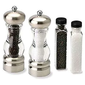 Olde Thompson Aspen - 5 Chrome Peppermill and Salt Grinder - Also Includes Bonus Pepper and Salt Refills, Fully Adjustable Grinding Mechanisms, Ideal Housewarming Gift, Includes Lifetime Guarantee