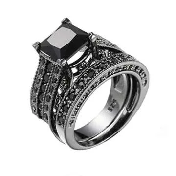 OldSch001 Womens Vintage Black Diamond 2-in-1 Engagement Wedding Ring Silver Rings (Black, 6)