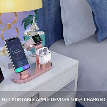 OLEBR Charging Stand Compatible with AirPods, iWatch Series 6/7/SE/5/4/3/2/1,Phone Series 13/12/12 Pro/Max/11/11 Pro/Max/Xs/X Max/XR/X/8/8Plus/7/7 P/6S/6S P(Original Cable Required)-Rose Gold