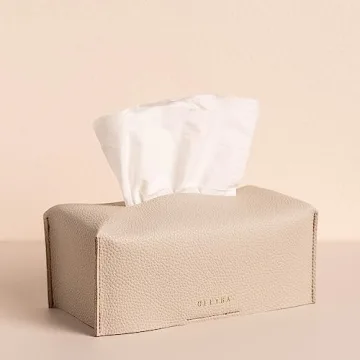 Show moreIntroducing the OLETHA Aesthetic Rectangle Tissue Box Cover, the ultimate decorative solution for upgrading the look of your everyday tissue box. Designed with style and functionality in mind, this medium flat tissue holder is a seamless addition to your home decor, bringing elegance to any room, from the living room to the bathroom. Its light taupe color is perfect for complementing various interiors, showcasing a chic leather look that not only serves its purpose but enhances your decor scheme.