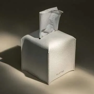 OLETHA Square Tissue Box Cover - Aesthetic Desk Decor for Room, Home & Office - Tissues Cube Boxes Holder - White