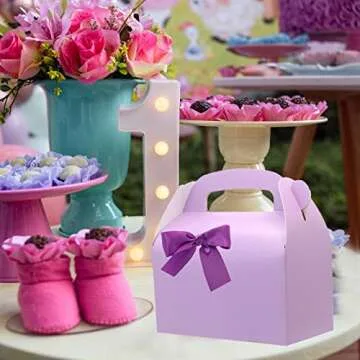 Oletx 30-Pack Purple Party Favor Treat Boxes, Goodie Boxes, Gable Paper Gift Boxes with Handles. Perfect for Purple Birthday Party Baby Shower Decoration Supplies.
