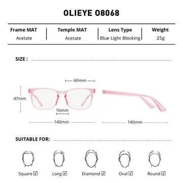 OLIEYE Blue Light Blocking Glasses - Computer Game Glasses Square Eyeglasses Frame for Women Men Anti Eye Eyestrain Reading Gaming Glasses (Tra_Pink)