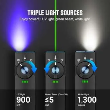 OLIGHT Arkfeld Pro Rechargeable EDC Flat Flashlight with Green Beam, UV and White LED Combo, 1300 Lumens Portable Pocket Lights, Triple Sources for Outdoors Emergency Working (Black NW)