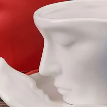 oliruim White Coffee Cup and Saucer Set - Ceramic Unique Kissing 8.5 oz Coffee Mug Set with Spoon, Face Coffee Cup and Saucer for Valentine, Wedding, Anniversary Decor (White)