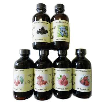 OliveNation Set of 6 Berry Extracts, Blueberry, Blackberry, Cherry, Cranberry, Raspberry, Strawberry - 6 x 4 oz bottles