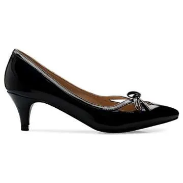 OLIVIA K Women's Classic Closed Toe D'orsay Bow Kitten Heel Pump Dress, Work, Party Mid Heeled Pumps,Black,7.5 B(M) US