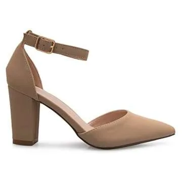 Show moreStep into style and elegance with the Olivia K Women's Sexy D'Orsay Ankle Strap Pointed Toe Block Heel Pump. This stunning footwear combines a classic silhouette with a modern twist, featuring approximately 3.5 inches of height that not only enhances your stature but also brings a sense of grace to any outfit. Crafted from high-quality taupe nubuck, these pumps provide a rich texture that effortlessly complements both casual and formal looks. The D'Orsay design adds an element of sophistication, while the pointed toe brings a chic aesthetic, making them an essential addition to your wardrobe.