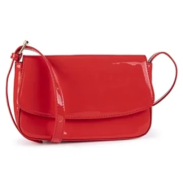 Olivia Miller Women's Faux Patent Leather Red Shoulder Bag with Adjustable Strap