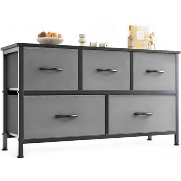 OLIXIS Dresser for Bedroom with 5 Drawers, Grey Storage Organizer Unit for Compact Living Spaces
