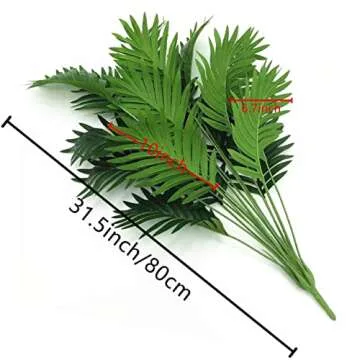 Ollain Artificial Palm Faux Plant Fake Tree Tropical Leaf Bush Plastic Greenery Large Areca Palm Plants Bush Imitation Ferns (Green, 2 PCS)