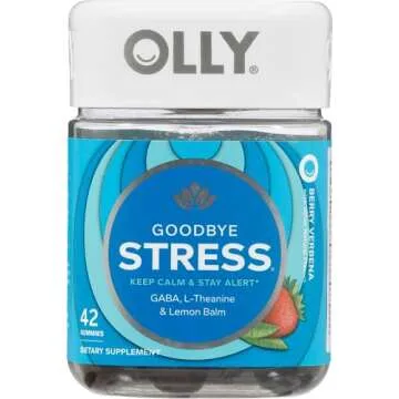 OLLY Goodbye Stress Gummies contain GABA, L-Theanine, and Lemon Balm, which are known for their calming effects.
