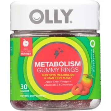 ... Show more Introducing the marvelous Metabolism Gummy Rings with Apple Cider Vinegar by OLLY! Designed to seamlessly fit into your daily routine, these scrumptious gummy rings are packed with essential nutrients to foster a happy and healthy metabolism. Infused with a clinically-studied amount of Chromium Picolinate, they not only support lean body mass but also provide a noticeable boost to your metabolism, thanks to the added Vitamin B12 that enhances cellular energy production.