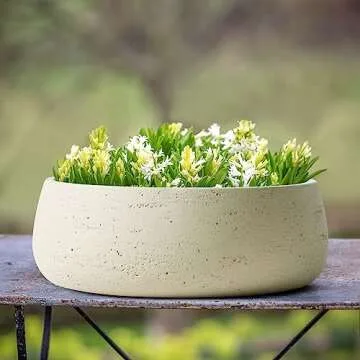 When stacked against typical plastic or metallic pots, the **Olly & Rose Planter Bowl** holds its own by offering an organic aesthetic, durable construction, and a design that nurtures plant health. Unlike many other pots, this planter combines both shallow depth and spacious diameter, which is ideal for the shallow roots of succulents while doubling as an elegant decor element. Its unique design makes it a standout piece that not only serves a practical purpose but also adds sophistication to any environment.