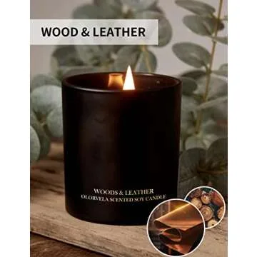 olorvela Candles for Men Wood Wicked Candles for Home Scented Mens Candle Aromatherapy 8oz, 50hr Burn Time, Woods & Leather Candle All Natural Soy Candles