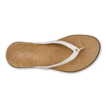 OLUKAI Honu Women's Beach Sandal, Soft & Comfortable Full-Grain Leather, Easy Slip-On Design for Everyday Fashion, Casual & Modern Style, Bright White/Golden Sand, 10