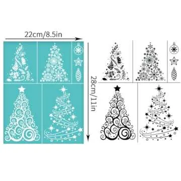OLYCRAFT 2Pcs 8.7x11 Inch Christmas Tree Self-Adhesive Silk Screen Printing Stencil Star Bulb Mesh Stencils Christmas Theme Reusable Mesh Stencils Transfer for DIY T-Shirt Fabric Painting