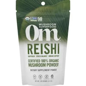 OM MUSHROOM SUPERFOOD Reishi Organic Mushroom Powder, 3.5 Ounce, 50 Servings, Adaptogen, Stress & Immune Support, Superfood Mushroom Supplement