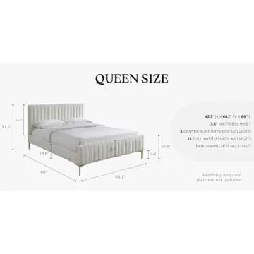 Omax Decor Julia Upholstered Platform Bed with Vertical Channel Tufted Headboard and Footboard | Box Spring Not Required | White Boucle, Queen
