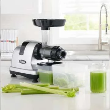 Show moreMeet the Omega Masticating Juicer, your new kitchen partner in the quest for health and well-being! This remarkable Cold Press Juicer operates at a gentle 80 RPM, a feature that minimizes heat buildup and oxidation, ensuring you receive the maximum nutritional benefits from your fruits and vegetables. Designed specifically to excel with celery, the Omega Juicer harnesses triple-stage masticating technology, guaranteeing unparalleled nutrient extraction and delivering freshly squeezed juices that are rich, velvety, and bursting with flavor. With its sleek silver finish and a powerful 200-watt motor, not only does it add elegance to your kitchen counter, but it also performs brilliantly, allowing you to enjoy every last, nutrient-rich drop of your delicious juice.