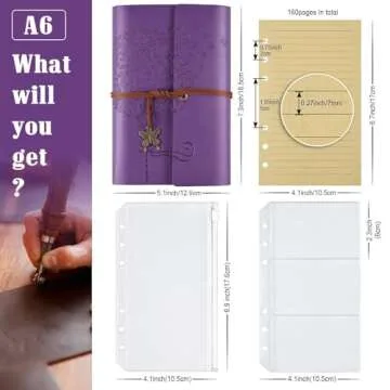 OMEYA Leather Journal Notebook, Refillable Writing Journal Diary Planner for Women Girls (Purple, A6 7.3'' x 5.1'')