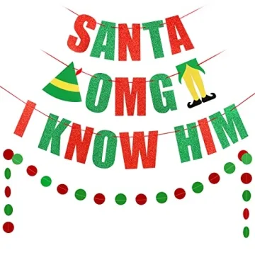 Show moreIntroducing the **OMG Santa I Know Him Banner**, a delightful addition to your holiday celebrations that brings joy, laughter, and a sprinkle of magic. This unique decoration not only showcases the beloved **Buddy the Elf** theme but also perfectly captures the spirit of Christmas with its vibrant red and green glitter design. Made from high-quality glitter cardstock, measuring approximately 6.7 inches in letter height, this banner is a memorable centerpiece that transforms your space into a winter wonderland. With the included red and green circle dots garland, you’ll create an enchanting atmosphere that is both festive and fun, ensuring your home is Christmas-ready!