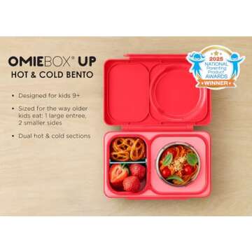 Show moreIntroducing the Omie OmieBox UP Bento Box for Kids, the ultimate lunch solution that grows with your child while helping them pack healthy, nutritious meals for school or outings! Designed for older kids aged 9 and above, this upgraded version of the beloved OmieBox features a larger, enhanced thermos insert capable of holding 12 ounces of food—40% more than its predecessor. Now your kids can enjoy their favorite hot meals like soups, stews, or pastas, kept warm for up to 4 hours, ensuring they have a delicious lunch waiting for them.