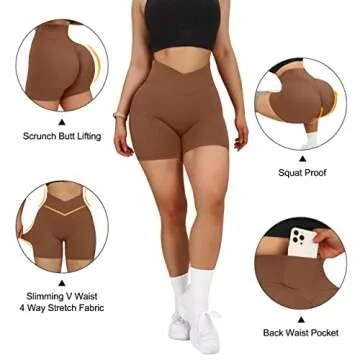 Show more Introducing the OMKAGI Women Cross Waist Workout Shorts - your new go-to companion for every workout session! Designed with both style and functionality in mind, these **5-inch ribbed high waisted yoga biker shorts** offer unparalleled comfort and support. The unique cross waist design provides a flattering silhouette while ensuring a secure fit, allowing you to move freely without any distractions. Crafted from a breathable, stretchy fabric, these shorts wick away moisture to keep you cool and comfortable, whether you're hitting the gym, practicing yoga, or just lounging at home.