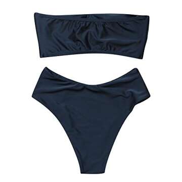 OMKAGI Women's 2 Pieces Bandeau Bikini Swimsuits Off Shoulder High Waist Bathing Suit High Cut(X-Large,Black)