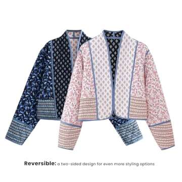 Omoone Women's Cropped Floral Quilted Jacket Cardigan Printed Lightweight Open Front Padded Puffer Coat(Pink-XS)