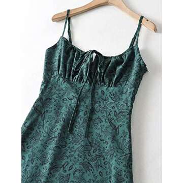 Omoone Women's Floral Dress Low-Cut Square Neck Spaghetti Strap Tie Bodycorn Dresses (01Green, Small)