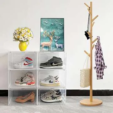 Show more Introducing the OMOPIN 8 Pack XL Shoe Storage Box, a revolutionary solution for organizing and displaying your shoe collection in a chic and space-efficient manner. Crafted with a transparent clear design, these drop side sneaker display cases allow you to showcase your shoes while keeping them dust-free and neatly organized. With versatile color options that can be easily combined and stacked, this shoe box system is perfect for personalizing your shoe wall and giving your dressing room or bedroom a clean and elegant appearance.